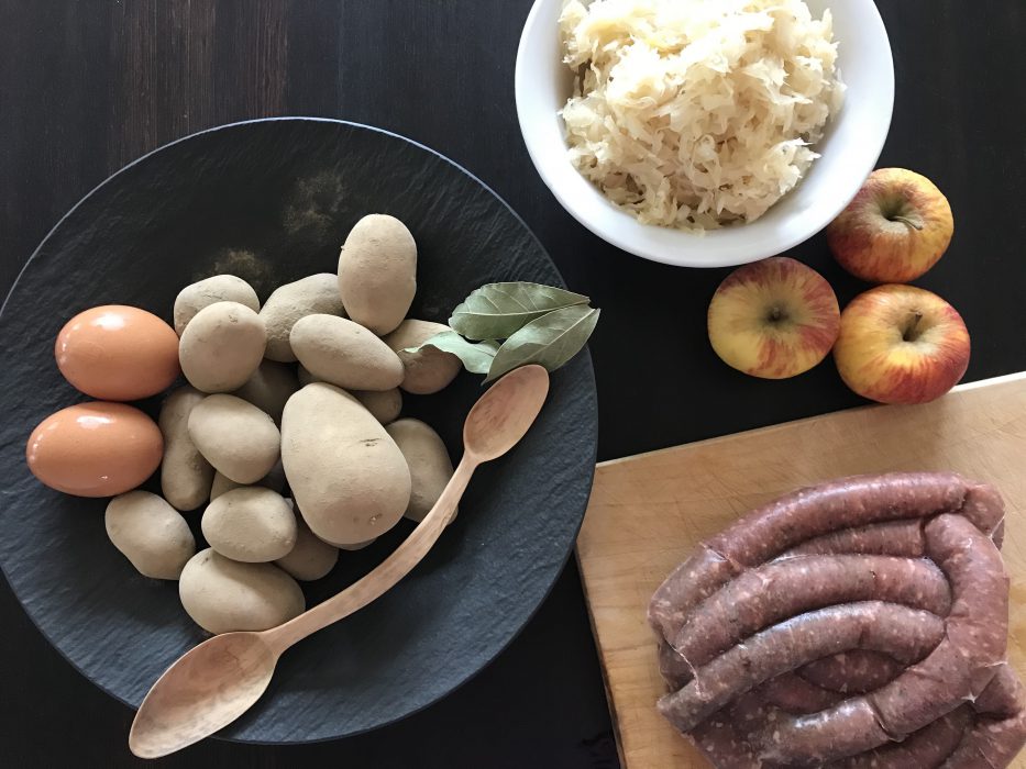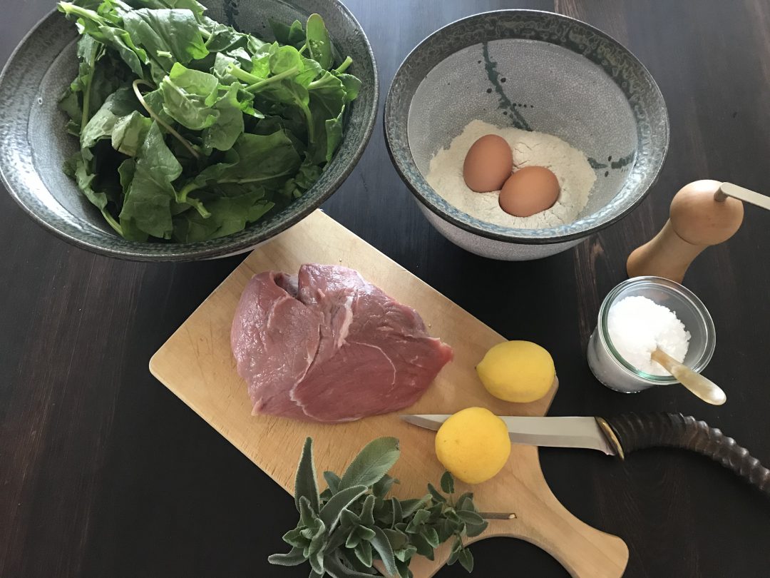 Schwäbische Knöpfle mit Kalbsgeschnetzeltem und Vogerlsalat